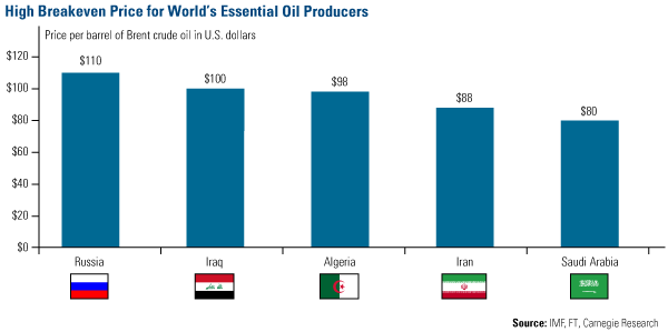 Preço a partir do qual os orçamentos dos países abaixo são positivos.